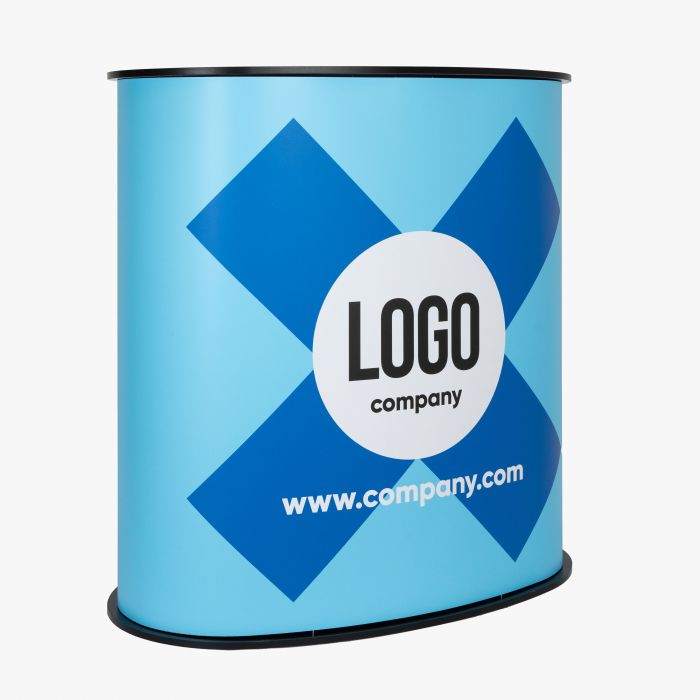 Op zoek naar een compacte en representatieve tafel-oplossing die direct een professionele indruk maakt? De Kidney Balie is perfect voor beurzen, promoties, events of ontvangstbalies. Dankzij de elegante, kidney‑vorm oogt je presentatie vriendelijk, toegankelijk en visueel aantrekkelijk. Je hebt de keuze uit twee hoogwaardige materialen voor de bodyprint. Beide opties zijn licht van gewicht, opvouwbaar en eenvoudig te wisselen. Het boven- en onderblad van de balie zijn gemaakt van 16 mm gelamineerd MDF, wat zorgt voor stabiliteit en een hoogwaardige uitstraling.